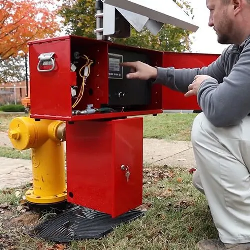 The Eclipse i-Series #9700i-Solar is a portable intelligent monitoring and flushing device used to analyze water quality and flush stagnant waterlines as well as capture important water quality data around your distribution system. Solar powered, self-charging unit that attaches easily to any 2.5″ NST outlet. Its standard chlorine analyzer and PLC allow users to set minimum and desired chlorine residual parameters, which will trigger a flush when residuals drop too low. By capturing flushing and residual data, users can analyze which dead end waterlines need to be flushed on a more frequent basis and will know exactly how to program a flushing schedule, using one of Kupferle’s Automatic Flushing Stations, by the data acquired from this unit to maintain safe residuals. Additionally, users can incorporate up to 8 sensors total to track other important water attributes like pressure, PSI, turbidity, and more.